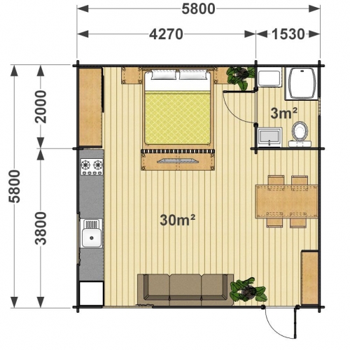 NASHVILLE 6x6 m, namelio plotas 31,9 m²